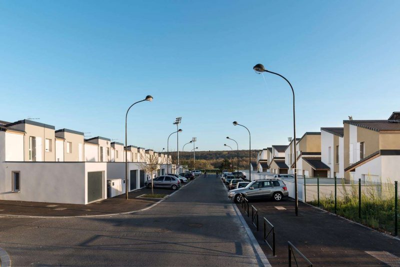 Faisant face, mais sur un linéaire moindre, les 11 maisons en bande présentent quant à elles un aspect beaucoup plus dense.