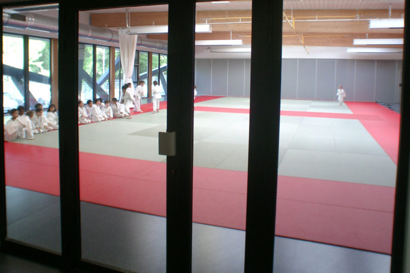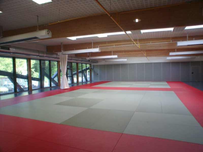Elément principal du complexe, le dojo est conforme aux normes de niveau départemental, le Tatami de 12 x 32 m comporte trois tapis de compétition. Le volume du Dojo est divisible par une cloison mobile pour permettre deux entraînements différents simultanément. En complément de cet équipement, on trouve au même niveau une salle réservé à la boxe.