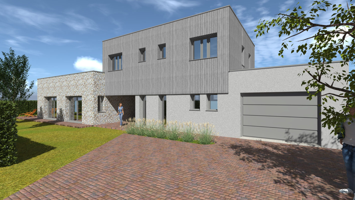 Le caractère contemporain de l’architecture projetée est exprimé par l’emploi de larges baies vitrées aux formes et proportions contemporaines.