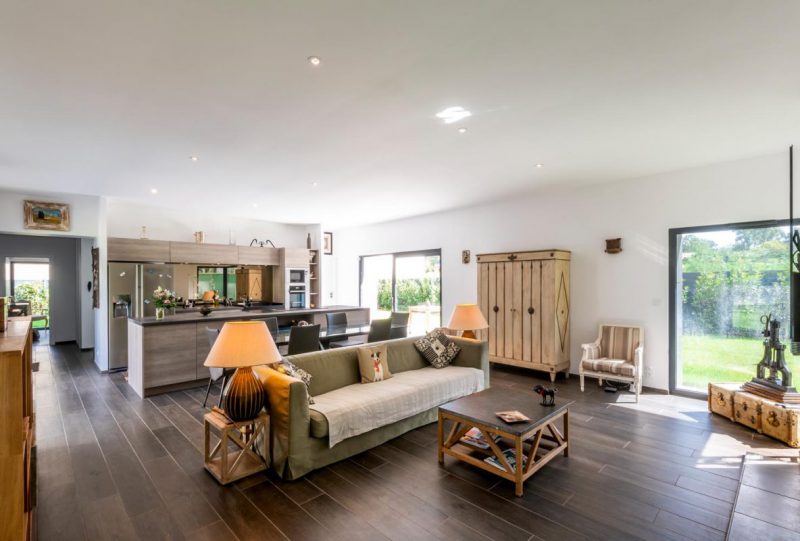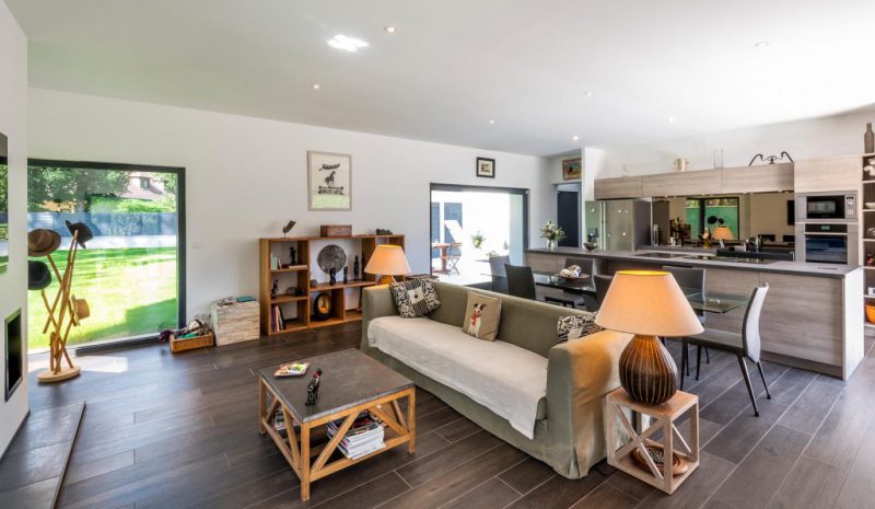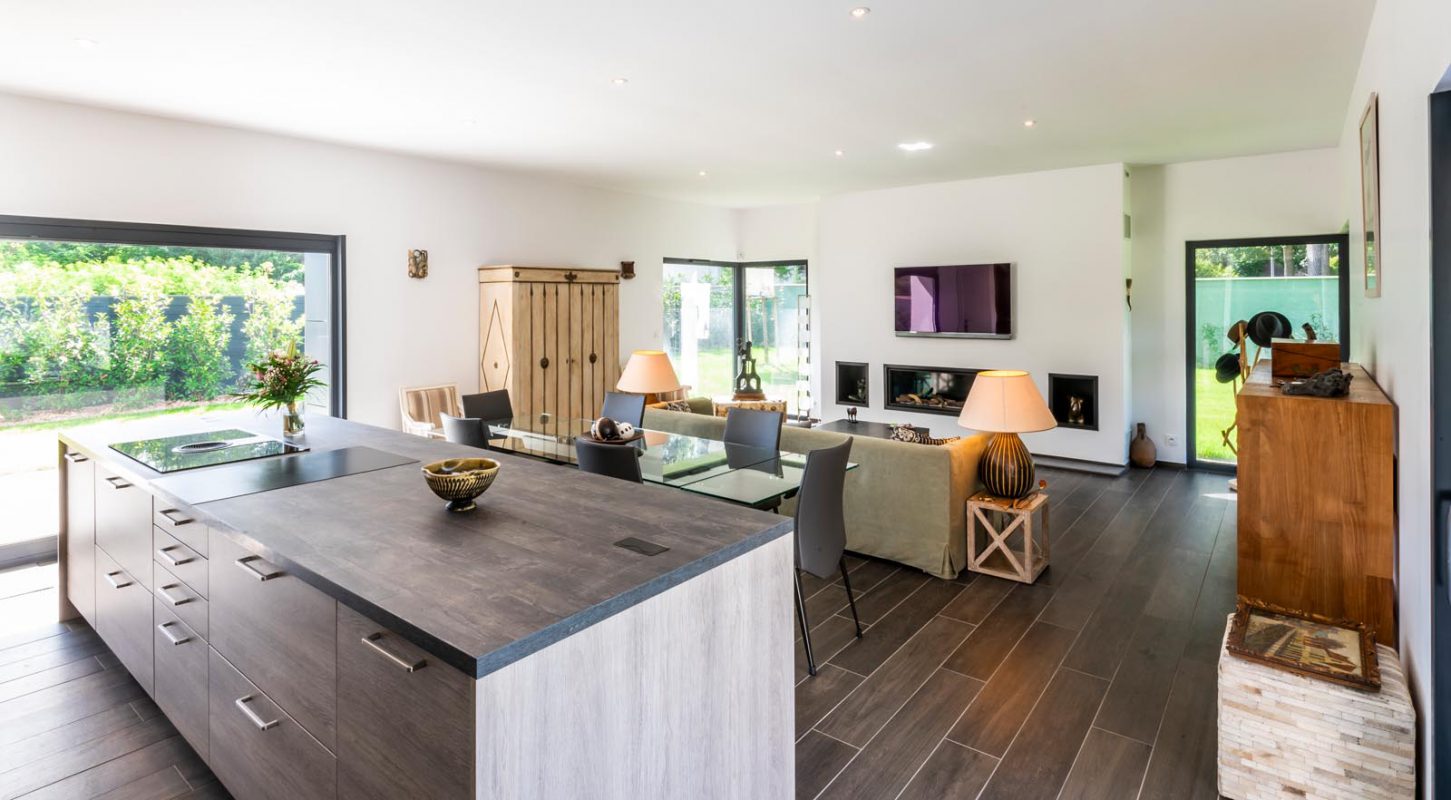 Le volume principal, destiné à l’habitation proprement dite est un rectangle en rez-de-chaussée avec étage partiel, se calant à 8 mètres de la limite du fond de parcelle et 6 mètres de la limite mitoyenne.